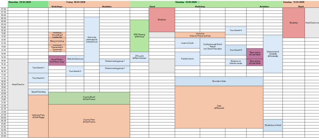 Visit to the International Criminal Court. 08.30 -15.30. Includes travel, visit, lunch. Registration through the ticket platform.